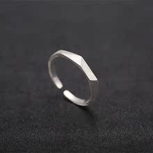925纯银光面细线开口戒指女可调节韩版时尚简约小指戒关节戒尾戒