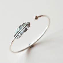 s925纯银泰银手镯羽毛手工复古成熟日韩时尚开口镯子手环女款包邮