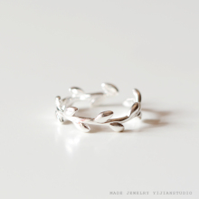 s925纯银戒指树叶子清新文艺手工森系情侣橄榄枝开口对尾戒女包邮