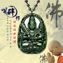 开光正品 天然黑曜石彩虹眼空虚藏菩萨吊坠 生肖牛虎守护神本命佛
