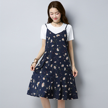 2017夏季新款韩版雪纺吊带连衣裙两件套小碎花中长款套装裙子女夏