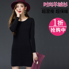 动感 哥弟圆领毛衣女套头中长款羊绒针织衫修身裙羊毛打底衫秋冬