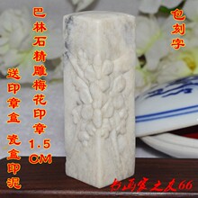 巴林石精雕梅花 方形 印章 石 章料 落款藏书章 免费手工刻字2.0