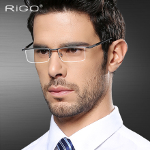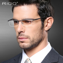 意格近视眼镜男 半框眼镜架商务 舒适 大脸眼睛框 纯钛眼镜框超轻