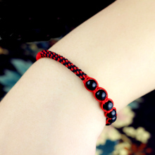 开光黑曜石手工编织手绳红绳手链男士学生设计吉祥绳生日情侣礼物