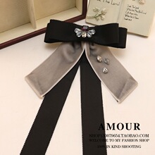 领结领花 韩版复古学院风合金蝴蝶结长飘带领饰 服装配饰品女
