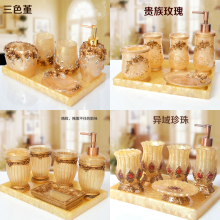 高档欧式树脂卫浴五件套 浴室牙具洗漱套装漱口杯卫浴套装带托盘
