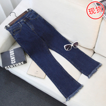 张大奕 jupe 2017年春新款脚口直筒毛边牛仔裤九分裤女vendue