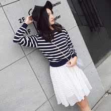 张大奕小清新girl条纹毛衫两件套连衣裙 套装裙同款春秋新款潮