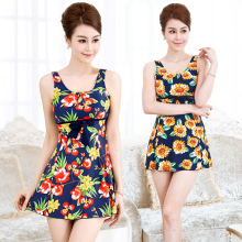 2016新款温泉泳衣女士保守连体裙式遮肚显瘦新款大码女式泳衣