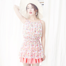 新款游泳衣女 韩国修身连体碎花裙式聚拢遮肚显瘦平角保守泳衣