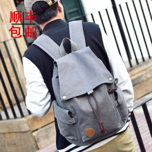 帆布双肩包男士背包简约韩版运动书包时尚潮流初中学生个性百搭大