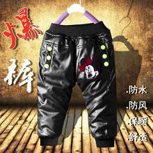 爆款冬季中男童皮棉裤小童加绒皮裤女儿童加厚保暖可开裆宝宝皮裤