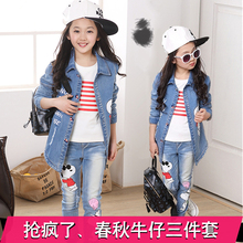 童装4-6-7-8-9-10-15岁女童牛仔套装女孩三件套中大儿童外套秋款