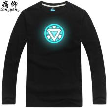 纯棉长袖男款青少年发光衣服夜光荧光复仇者联盟钢铁侠反应堆T恤