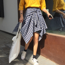 春夏女装2017新款韩版不规则假两件格子半身裙高腰显瘦学生短裙潮