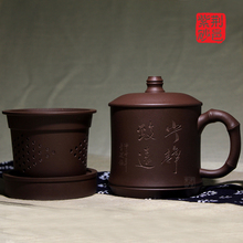 荆邑紫砂杯茶杯宜兴功夫全手工茶具紫泥名家过滤内胆隔舱宁静致远