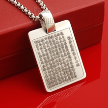S999足银吊牌波罗蜜多心经吊坠男女项链纯银情侣吊坠刻字送证书