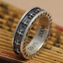 纯银S925 十字架军花十字架银饰品 复古泰银 男士款戒指指环