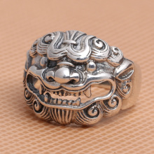 纯银S925 貔貅头 招财辟邪 复古泰银 戒指指环 男士款 饰品