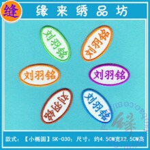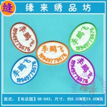 幼儿园 宝宝 名字贴 布 姓名贴 名字条 缝 刺绣 标签 电话圆10个