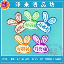 幼儿园 宝宝 名字贴 布 姓名贴 名字条 缝 刺绣 标签 M小兔10个