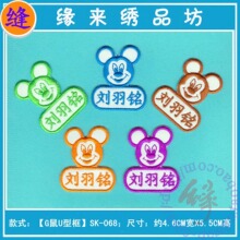 幼儿园 宝宝 名字贴 布 姓名贴 名字条 缝 刺绣 M鼠U型框 10个