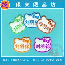幼儿园 宝宝 名字贴 布 姓名贴 名字条 缝 刺绣标签 猫咪加框10个