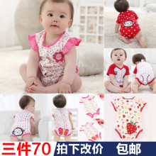 婴儿连体衣服女宝宝夏装哈衣0新生儿1岁4夏天2夏季短袖纯棉3个月6