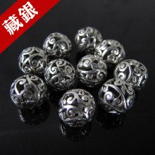 藏银镂空圆球 8/10/18mm 圆珠散珠隔珠 DIY藏式菩提佛珠手链配饰