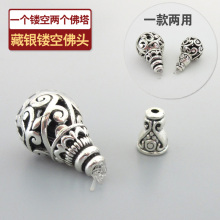 藏银镂空佛头 三通藏式佛珠 合金银白铜 DIY藏式菩提手串手链配饰