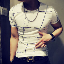 2016夏季韩版修身印花男士短袖T恤网子个性夏日圆领半袖体恤男潮