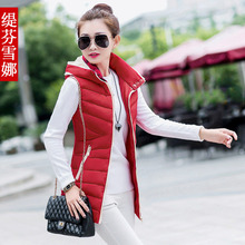 马夹女中长款韩版连帽大码棉坎肩 2016秋冬反季清仓修身背心外套