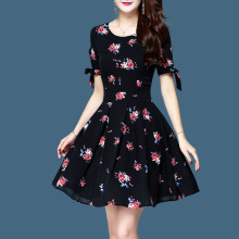 夏季连衣裙雪纺女装新款2017春装韩版修身大码显瘦印花裙子碎花裙