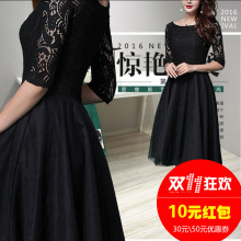 春秋连衣裙子2016新款韩版修身女装大码春装显瘦蕾丝性感女裙春款