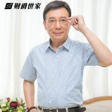 中年男士短袖衬衫爸爸装夏季中老年条纹商务衬衣免烫休闲大码寸衫