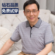 中老年人男士短袖T恤棉 翻领条纹中年夏装体恤衫爸爸装大码pplo杉