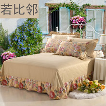 若比邻全棉双拼花边床单固定式床罩1.5M1.8米单双人床裙加大2.0m