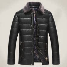 中年男士毛领皮衣外套秋冬新款加绒加厚翻领保暖开衫中老年男装