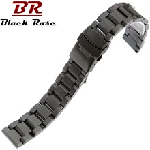 BlackRose实心不锈钢表带 黑色钢带链18 20 22mm男款 手表链配件