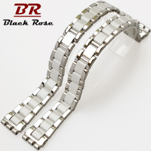BlackRose黑白陶瓷不锈钢表带 蝴蝶扣钢带配件16 18 20mm女 男款