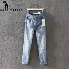 外贸剪标出口订单余单真品大牌尾单美国原单女磨白破洞牛仔九分裤