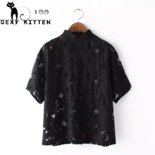 外贸原单正品剪标尾货尾单女装春夏大码欧美店透视小立领短袖T恤