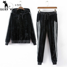 外贸原单正品剪标日本原单品牌折扣女装天鹅绒欧美运动条纹套装