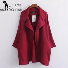 欧洲站2016外贸原单秋冬胖MM200斤特大码宽松女装中长款西装外套
