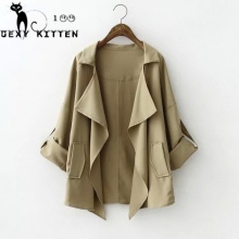 外贸大牌剪标订单出口余单真品尾单西班牙原单女装七分袖休闲风衣