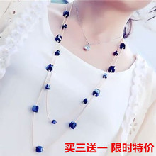 韩国夏季双层水晶长款项链女饰品衣服配饰挂链毛衣链挂饰百搭挂件