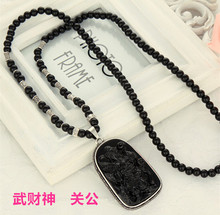 仿黑曜石关公项链武财神关二爷吊坠长款毛衣链男女佛珠装饰配饰品