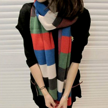 围巾女冬季加厚保暧毛线围巾男韩版潮披肩 韩国秋冬拼色百变围脖