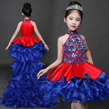 儿童主持人晚礼服模特走秀演出服女孩表演服女童公主蓬蓬裙长拖尾